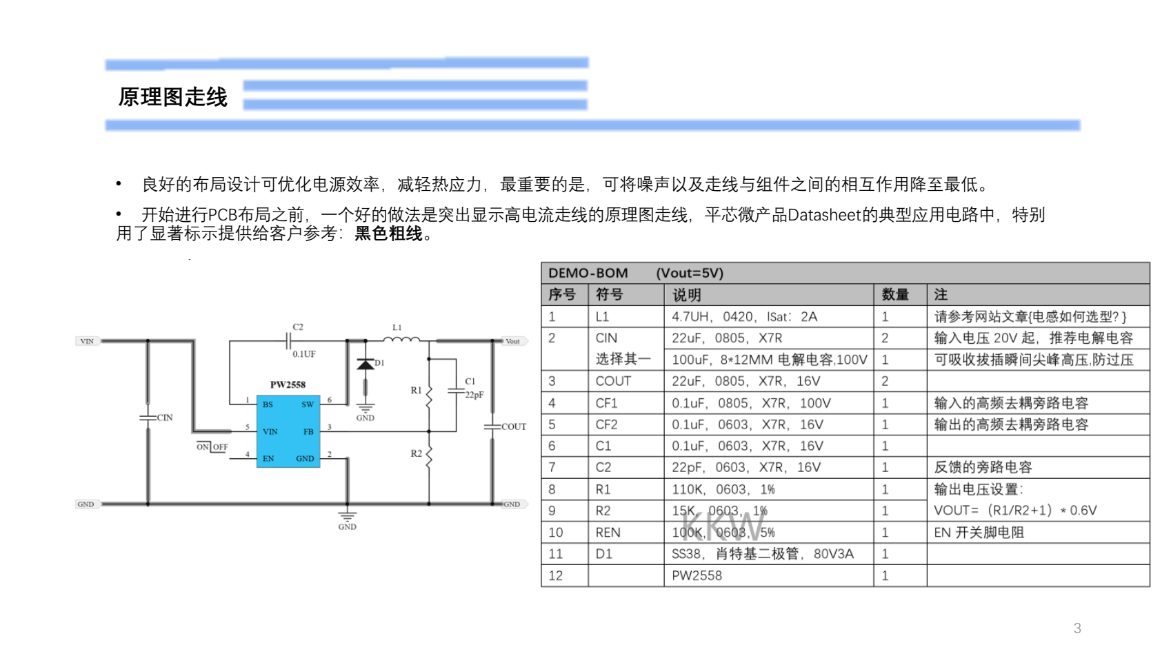 (PW2558芯片, L1, CIN和COUT)。 随后将小信号控制电路FB放置在布局中的特定位置。 电感大电流走线应短而宽, 以最小化