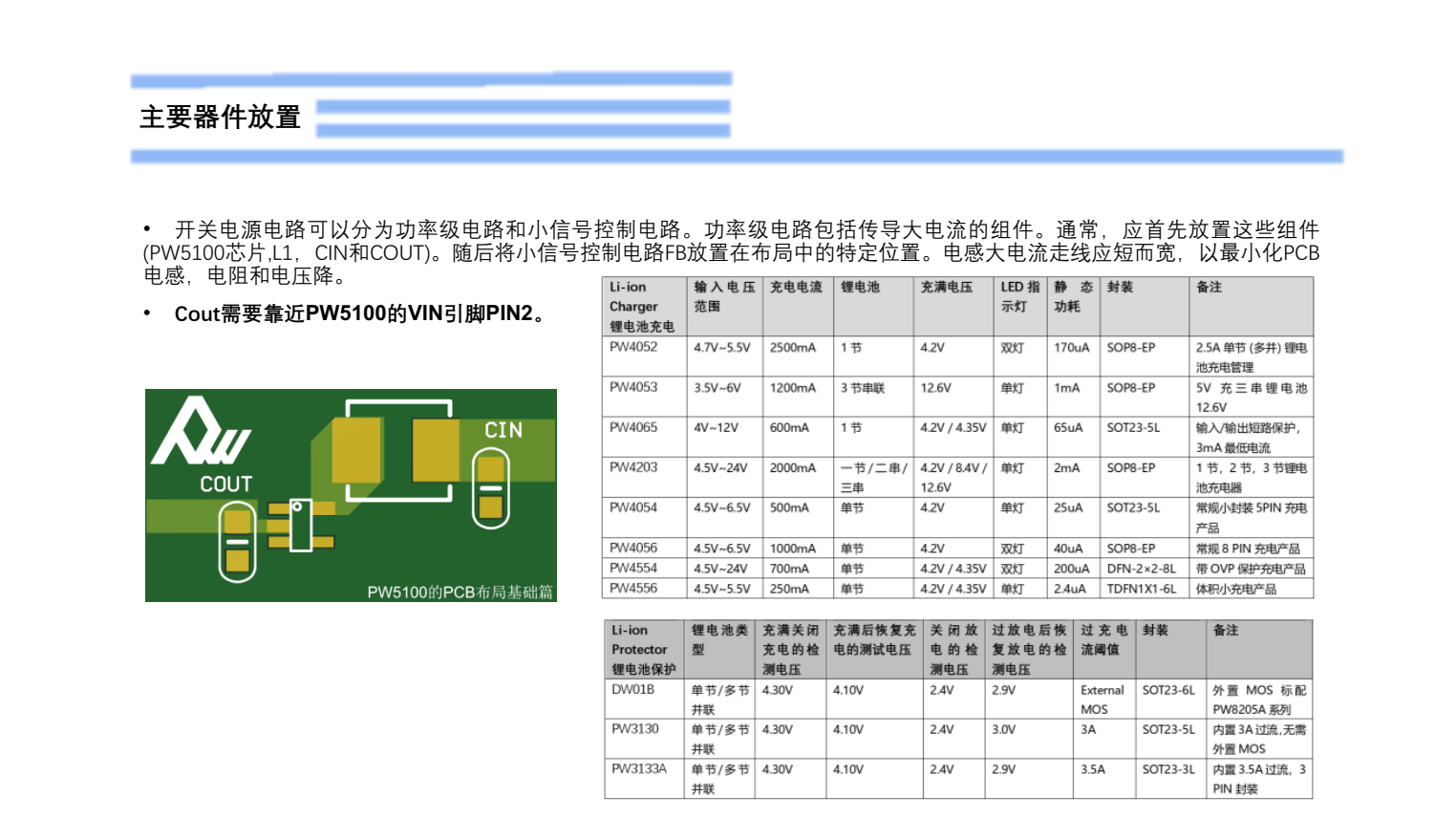 • Cout需要靠近 PW5100的 VIN引脚 PIN2。