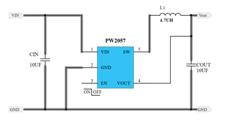 0.7A以下,推荐是 PW2057,固定输出 1.2V版本,外围也是很简单,简洁。