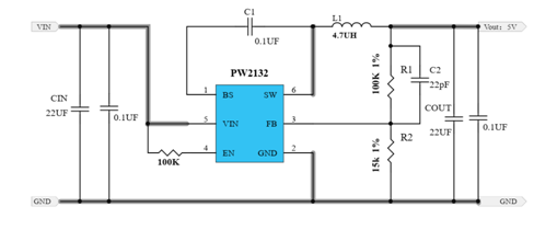 PW2162是一颗高效率,高集成的 2A同步整流降压降压换器, PW2162可在宽输入电压范围工作: 4.5V-16V,可调输出电压,内部集成了 MOS管整流,节省了外部肖特基二极管,效率也得到提高。