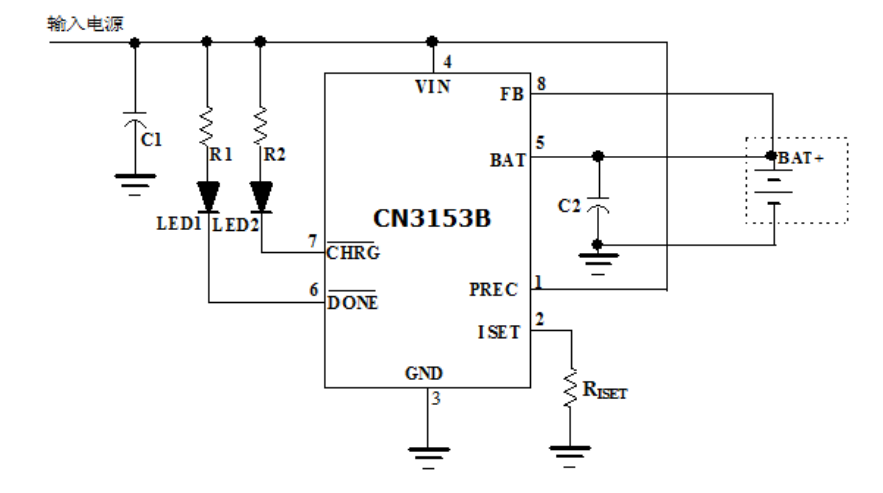 CN3153B是可以对单节锂电池进行恒流/恒压充电管理的集成电路。该器件内部包括功率晶体管,应用时不需要外部的电流检测电阻和阻流二极管。CN3153B只需要极少的外围元器件,非常适合于便携式应用的领域。热调制电路可以在器件的功耗比较大或者环境温度比较高的时候将芯片温度控制在安全范围内。恒压充电电压可以通过一个外部的电阻调节。充电电流通过一个外部电阻设置。在电池电压较低时,CN3153B处于涓流充电模式,涓流充电电流可选择为恒流充电电流的10%或100%。当输入电压掉电时,CN3153B自动进入低功耗的睡眠模式,此时电池的电流消耗小于3微安。其它功能包括电池短路保护,输入电压过低锁存,自动再充电,充电状态/充电结束状态指示等功能。CN3153B采用8管脚小外形封装(SOP8)。