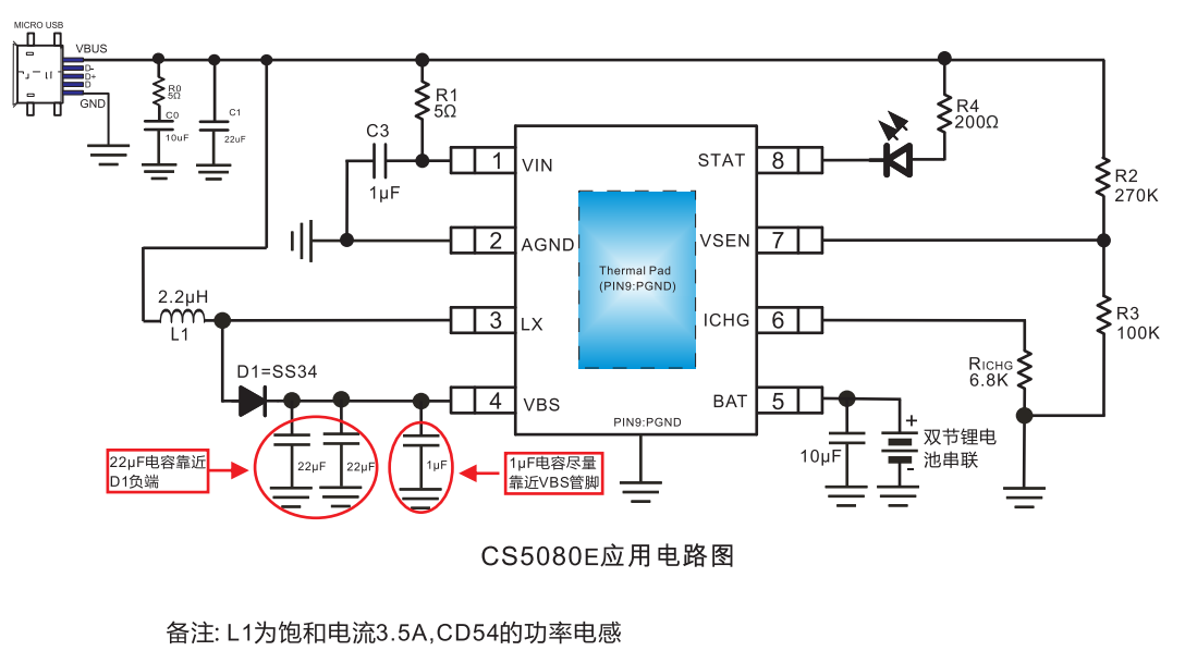 CS5080E是一款5V输入,支持双节锂电池串联应用锂离子电池的升压充电管理C.CS5080E集成功率MOS,采用异步开关架构,使其在应用时仅需极少的外围器件,可有效减少整体方案尺寸,降低BOM成本。CS5080E的升压开关充电转换器的工作频率为600KHz最 大2A输入充电,转换 效率为 90%。CS5080E输入电压为5V,内置自适应环路,可智能调节充电电流,防止拉挂适配器输出可匹配所有适配器。CS5080E提供了纤小的ESOP8L封装类型供客户选择,其额定的工作温度范围为-40℃至85℃。
