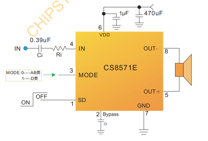 CS8571E 内置了过流保护短路保护和过热保护有效的保 护芯片在异常的工作条件下不被损坏。