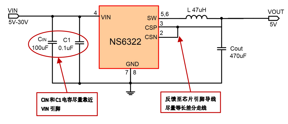 NS6322 是支持高电压输入的同步降压电源管理芯片,在 4~30V 的宽输入电压范围内可实现 2.4A的连续电流输出。NS6322 具有优秀的恒压/恒流(CC/CV)特性。NS6322 采用电流模式的环路控制原理,实现了快速的动态响应。NS6322 工作开关频率为 130kHz,具有良好的 EMI 特性。另外,芯片包含多重保护功能:过温保护,输出短路保护和输入欠压/过压保护等。NS6322 采用 SOP8 的标准封装。