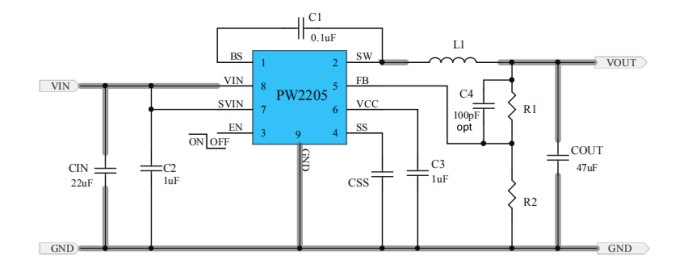 PW2205芯片5A,4.5V-30V输入,同步降压调节器
