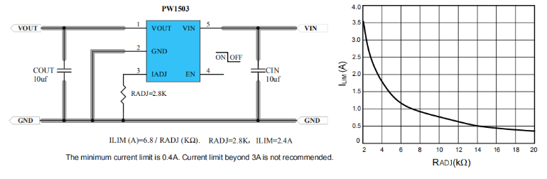 PW1502芯片USB口0.4A∽3A可调限流保护芯片,带短路保护