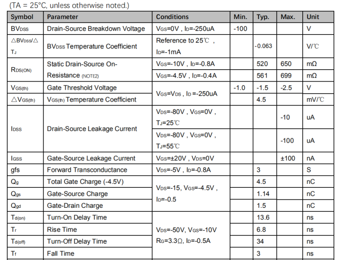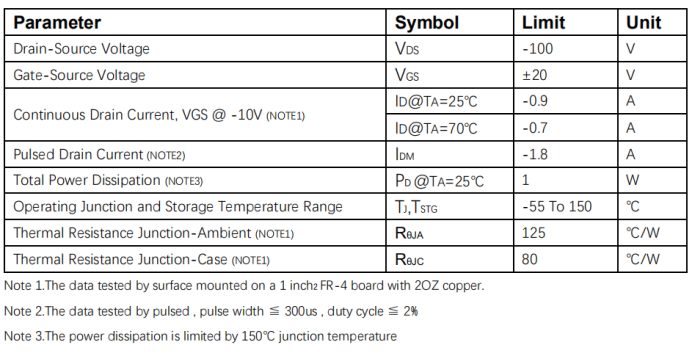 VDS=-100V , ID=-0.9A