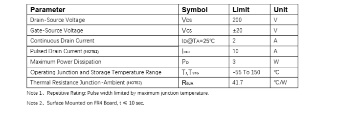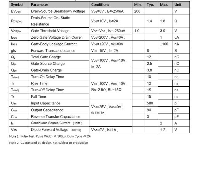 VDS=200V , ID=2A