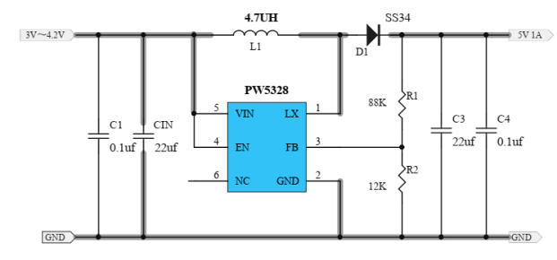 PW5328B 是2V-24V 输入的异步升压芯片,输出电流可达1A-2A等。