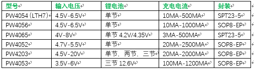 2-4,PW4065,特点:500MA充电电流,5V USB输入反接保护,电池反接保护,采用SOT23-5封装; PIN对PIN PW4054,并提供4.2V和4.35V充电版本,针对不同的电池充电。