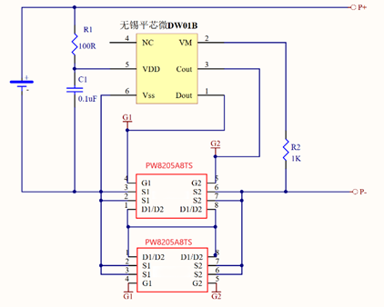 DW01B 和 PW3130,PW3133A 的电路图如下: