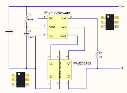 锂电池保护板电路:PW3133A,DW01+PW8205A6S