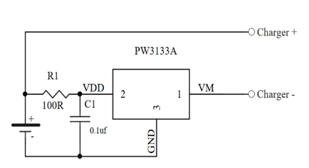 PW3133A,特点:内置MOS,电路简单,在PW3130的基础上再简洁了芯片体积,采用SOT23-3封装。
