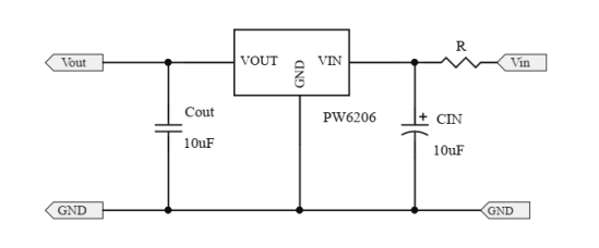 PW6206 系列是一款高精度,高输入电压,低静态电流,高速,低压降线性稳压器
