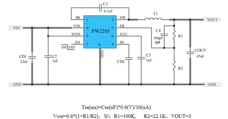 损失。 PW2205 采用瞬时脉宽调制( PWM)结构,实现高阶跃降的快速瞬态响应轻载时的应
