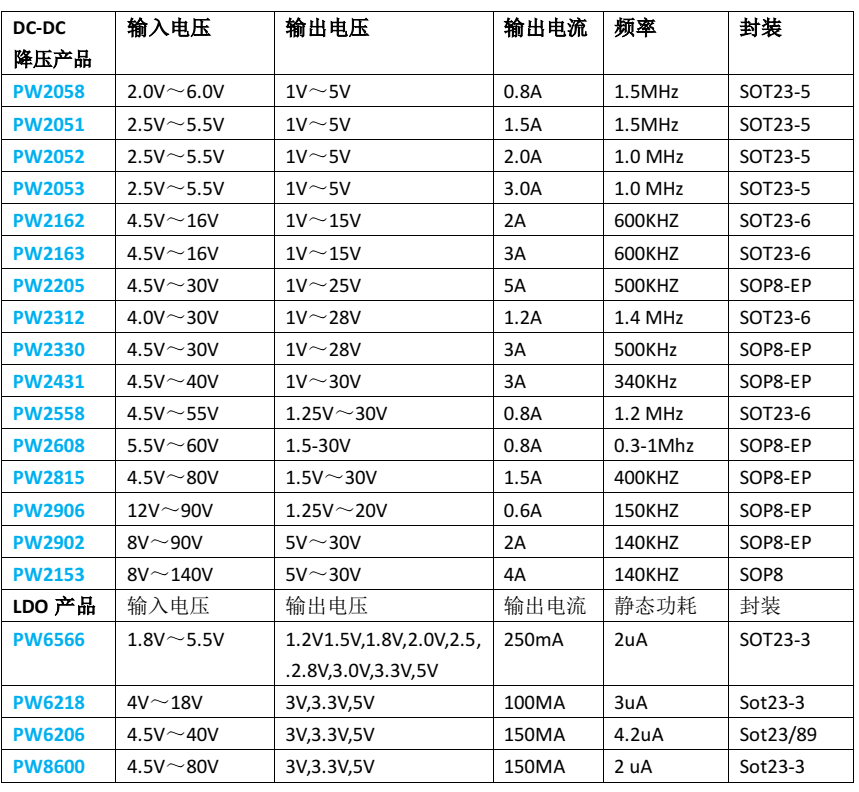 PW2312 是一个高频,同步,整流,降压,开关模式转换器内部功率 MOSFET。