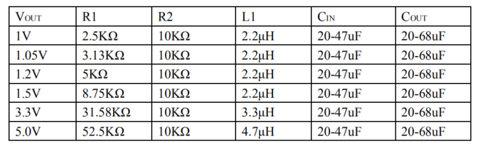 COUT 建议 22uF 两个并联, L1 推荐 2.2-4.7UH, C2 一般是 22pF,可调