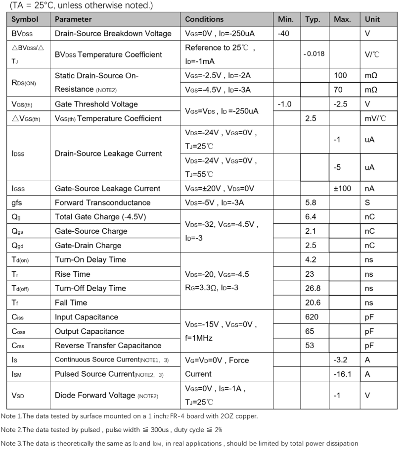 PW2319 采用先进的沟道技术,提供优秀的 RDS( ON),低栅电荷栅极电压低