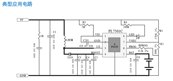 MAX大 2A 输入充电,转换效率为 90%。 PL7501C 输入电压为 5V,内置自适应环路,可智能调节充电电流, 防止拉挂适配器输出可匹配所有适配器。PL7501C 提供 ESOP8 封装(底部焊盘)。