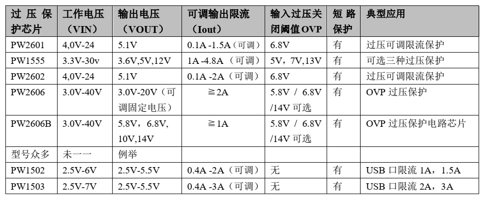 例如 PW2601 的输入过压保护阈值是 6.8V,就是当输入电压超过 6.8V 后, 芯片保