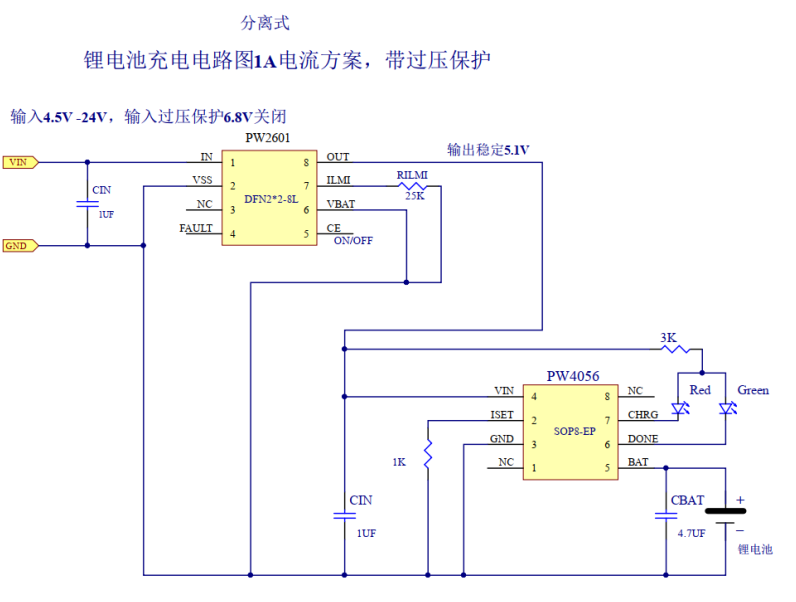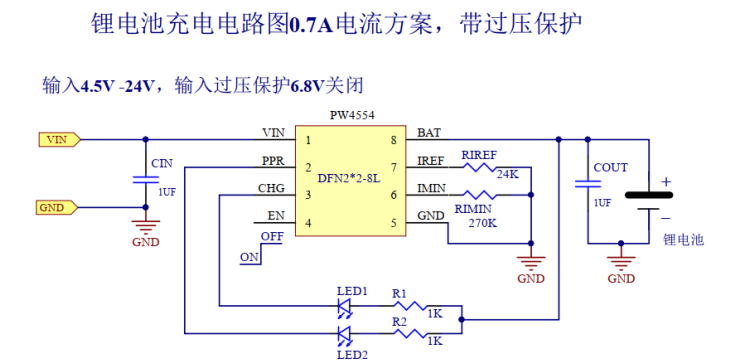 PW2601+PW4056 的集合芯片,内置过压保护的锂电池充电 IC-PW4554。