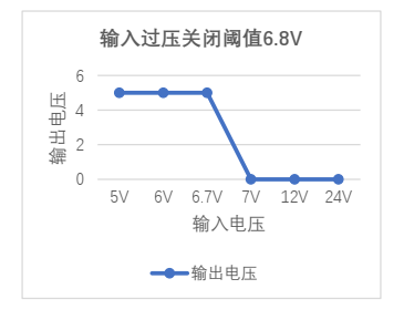 6.8V 时,输出电压还是能稳定在 5V,在超过 6.8V 以后,断开输出,关闭电路供电。