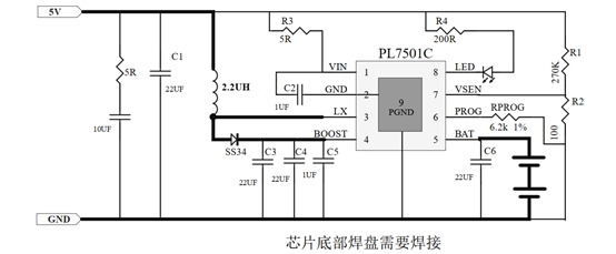 5V输入,升压型号,充电电流 1A,双节锂电池充电管理芯片 PL7501C