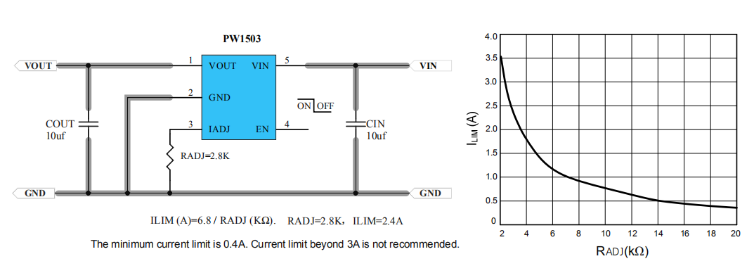 PW1503 是超低 RDS( ON)开关,具有可编程的电流限制,以保护电源源于过电流和短路情