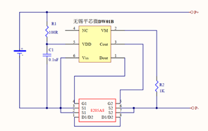 - DW01B, 特点:外置MOS(8205A6或者8205A8),由于是外置MOS,过充电电流和过放电电流可通过 很 多 个MOS并联来提高,这是最常见的,采用SOT23-6封装。