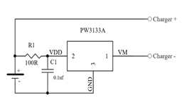 - PW3133A,特点:内置MOS,电路简单,在PW3130的基础上再简洁了芯片体积,采用SOT23-3封装