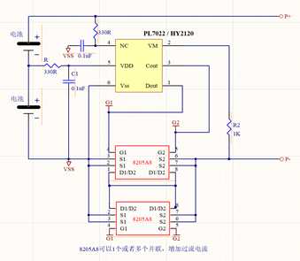 PL7022,两节锂电池保护电路。