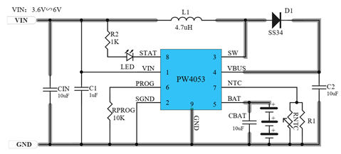 PW4053,输入5V,升压给三节锂电池充电,最大1.2A