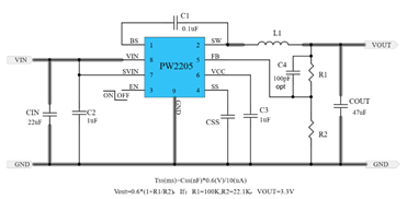PW2205,两节锂电池降压稳压到1.2V,3.3V,5V,6V等,最大5A