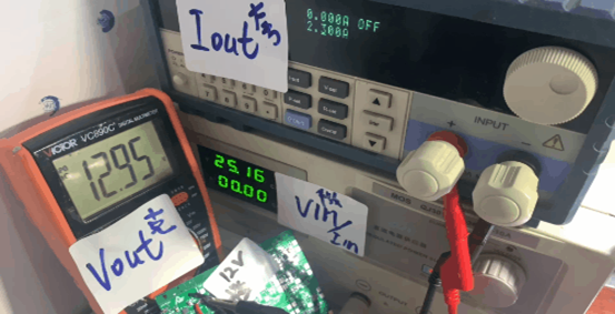 输入 12V,输出 12V3A时,输入电压拉高,当输入电压达到 14V时,输出电压关闭,输入电压再高,也是没有输出。