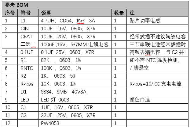 3, 5V 输入升压,三节锂电池充电方案BOM物料表