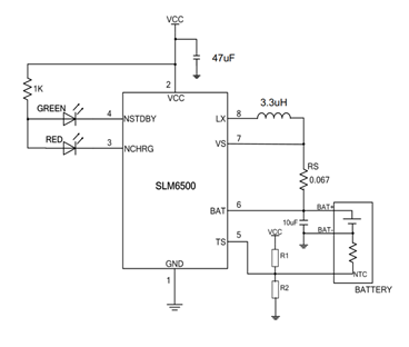 SLM6500是一款面向5V交充适配器的2A离子电池充电器。它是采用1.5MHz固定频率的步降压型转换器,利用芯片内部的功率晶体管电池进行涓流、恒流和恒压充电。充电电流可用外部电阻编程设定,持续充电电流可达2A不需要另加防倒灌二极管。具有高达90%以上充电效率,且自身发热量极小。同款脚位的PW4052在电磁干扰EMI措施上,会简单点,增加了RC吸收电路即可完成。