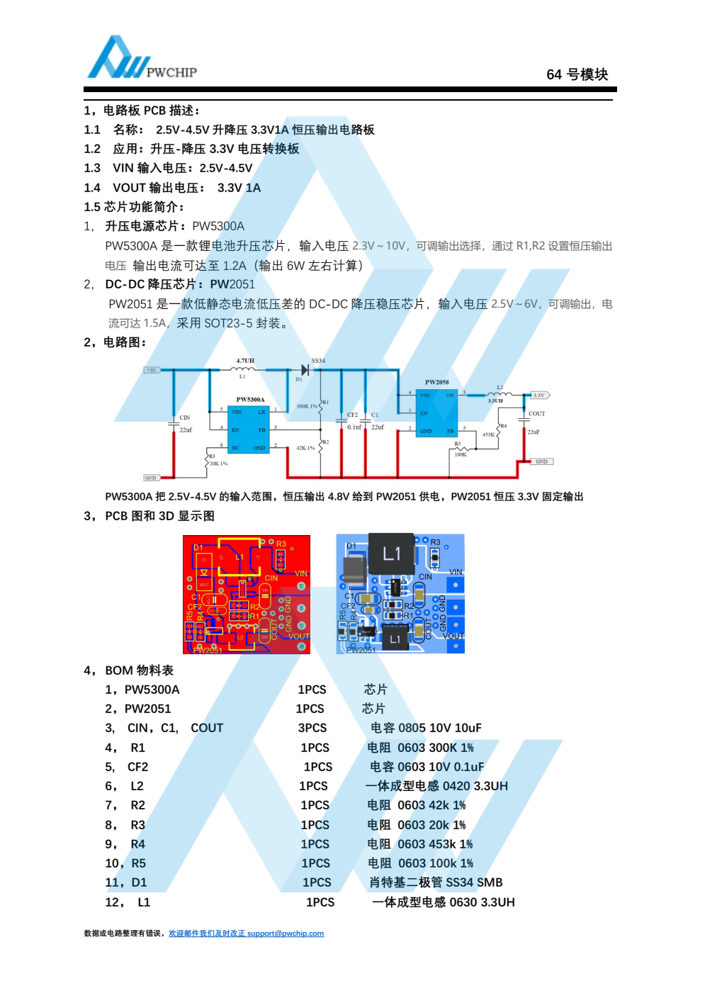 2.5V-4.5V 升降压 3.3V1A 恒压输出电路板
