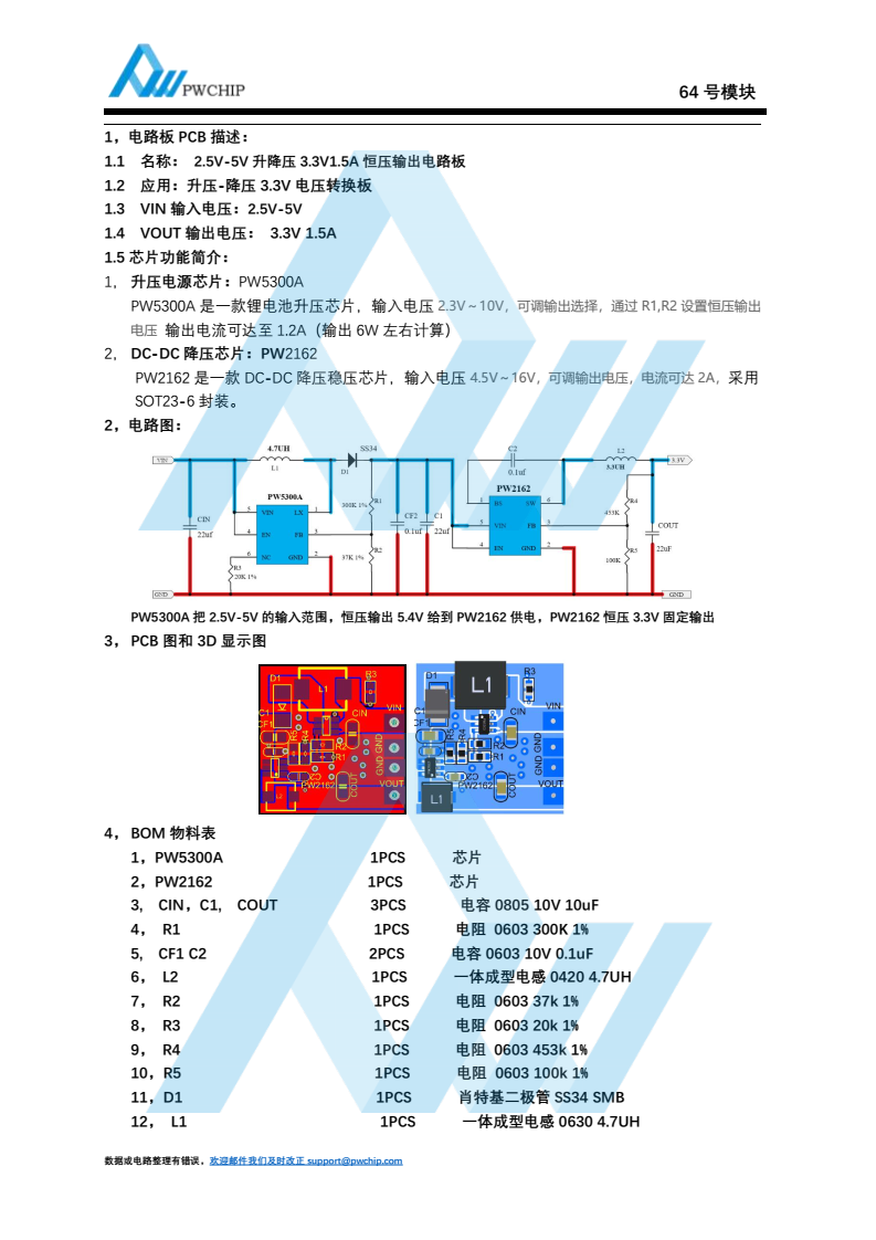 2.5V-5V 升降压 3.3V1.5A 恒压输出电路板 1.2 应用: 升压-降压 3.3V 电压转换板