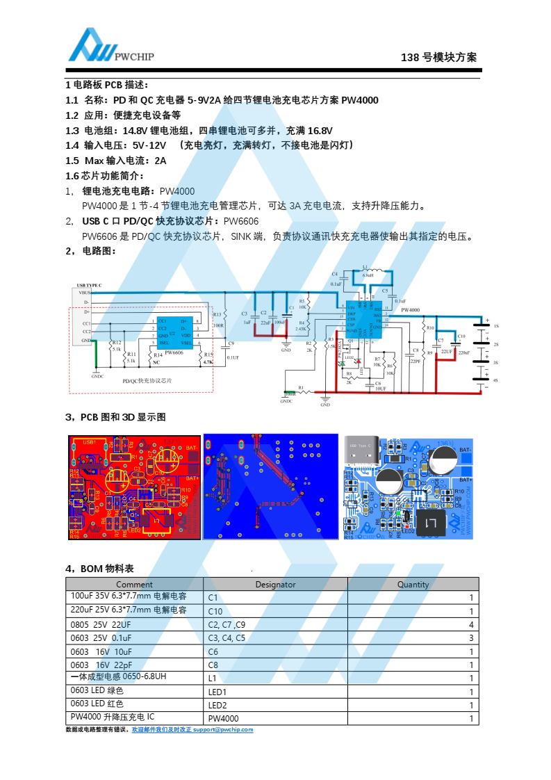 PD 和 QC 充电器 5-9V2A 给四节锂电池充电芯片方案 PW4000