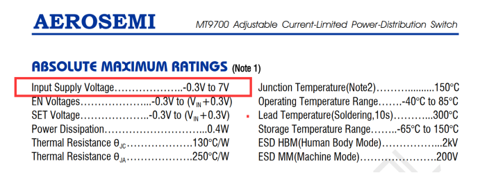 从 MT9700 可以看到 VIN 的耐压是 7V,输入超过 7V,很大可能会造成损坏。