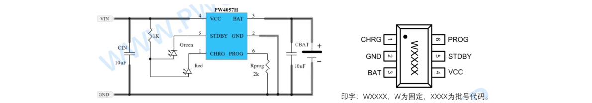 14, PW4057H,适用于锂电池充电应用,是过压保护+4057 锂电池充电芯片二合一版本,适用于 18650 或者小聚合物锂电池 3.6V 和 3.7V 的电池上,充满电压 4.2V,可调充电电流高到 500mA。 双 LED 充电指示灯。 平芯微 PW4057H 亮点: 1,输入高达 28V 耐压,输入过压关闭充电阈值 6.8V; 2,双高耐压, PW4057H 充电脚 BAT 脚耐压也是高耐压 20V,比常规的 4057 耐压高 300%以上。 更具有安全性。