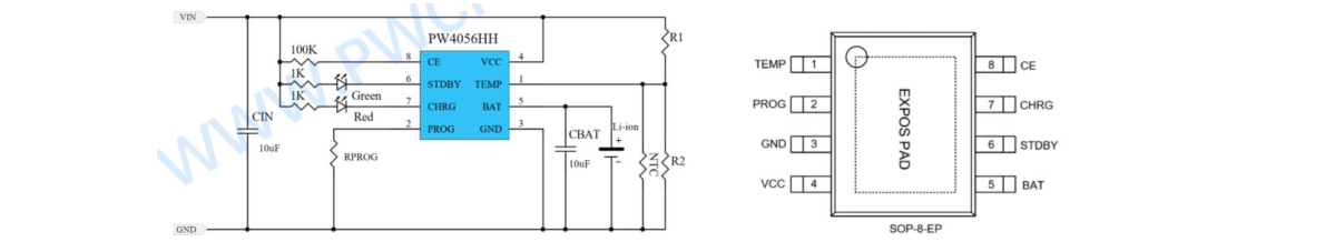 15,PW4056HH,适用于锂电池充电应用,是过压保护+4056 锂电池充电芯片二合一版本,适用于 18650,或者小聚合物锂电池 3.6V 和 3.7V 的电池上,充满电压 4.2V,可调充电电流高到 1000mA。双 LED 充电指示灯。PW4056HH 亮点:1,输入高达 28V耐压,输入过压关闭充电阈值 6.8V;2,双高耐压,平芯微 PW4056HH充电脚 BAT 脚耐压也是高耐压 20V,比常规的 4056 耐压高 300%以上。更具有安全性。