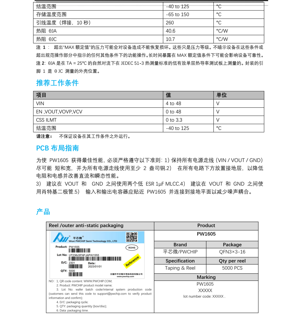 平芯微PW1605中文规格书