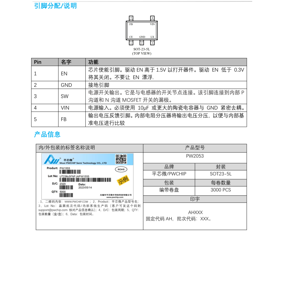 平芯微PW2053中文规格书