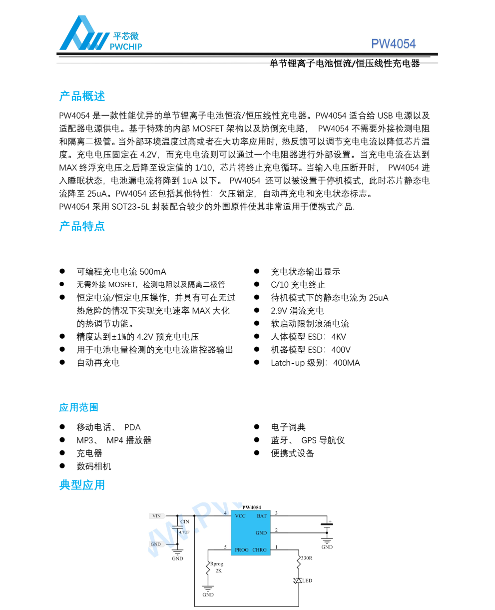 平芯微PW4054中文规格书