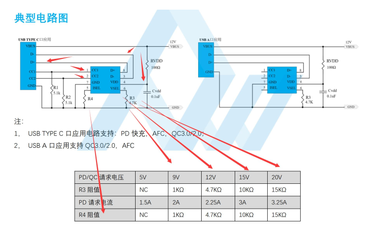 2, 是因为 TYPE C 的普及, 慢慢很多手机更换用 TYPE C 口了, 也诞生了 TYPE C 的通用快充协议名称: PD 快充, PD 快充有 PD2.0 (5V,9V,12V,15V,20V), PD3.0(PD2.0 的基础上, 再增加 0.02V 更细分化的调压, 不像 PD2.0 一样, 直接 5V 变 9V, 这个在手机充电时有很多益处, 但是在我们快充诱骗芯片来说, 考虑到 PD2.0 兼容性, 这个用处很低) , PD3.1(在 PD2.0 和 PD3.0 上, 再增加28V, 48V 输出, 不过目前因为热拔插问题, 过高电压浪涌比较大, 接口容易浪涌击黑, 所以目前很少有批量量产, 可以不做考虑) , 因为 TYPE C 口有很多脚, 自然也兼容了 A 口的功能, 所以 TYPE C 快充一般也兼容了 QC3.0 和 QC2.0 快充协议, 但注意 A 口就兼容不了 PD 快充协议