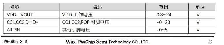 PW6606 的 CC1, CC2/D+/D- 的耐压为 24V, 如果 CC1/CC2 /DP/DM 任意端口电压误触 VBUS 电