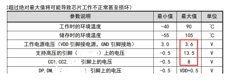 以下是其他同类型芯片的 CC1,CC2, DP,DP(D+,D-)引脚的耐压。