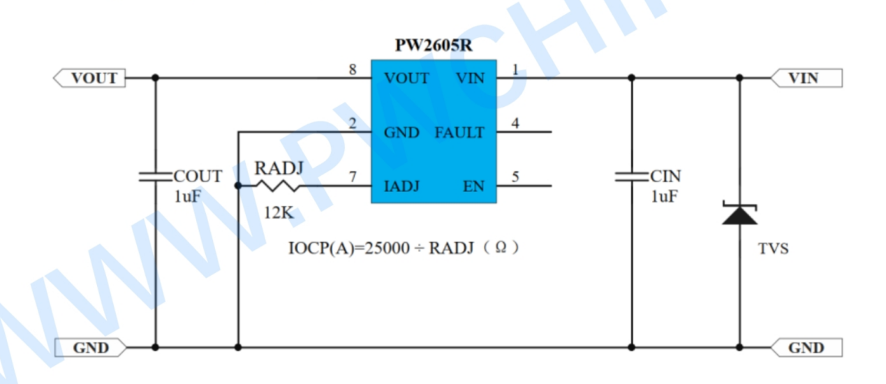 PW2605R为5V供电系统提供了专业、可靠的输入级保护方案,尤其适用于充电线、USB端口、户外设备接口等易受短路、过压威胁的应用场景。其快速响应、可编程设定与自动恢复的特性,能够显著提升产品的鲁棒性与安全性,是现代电子设备端口防护设计的理想选择。
