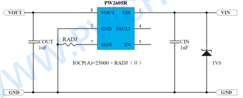 PW2605R :一款特色鲜明的芯片。它额外提供了 输入防反接保护 ,即使电源正负极接反也能保护后级电路安全。同时,其 FAULT 开漏输出引脚会在任何保护( OVP/OCP/OTP)触发时拉低,为系统诊断提供了明确信号。